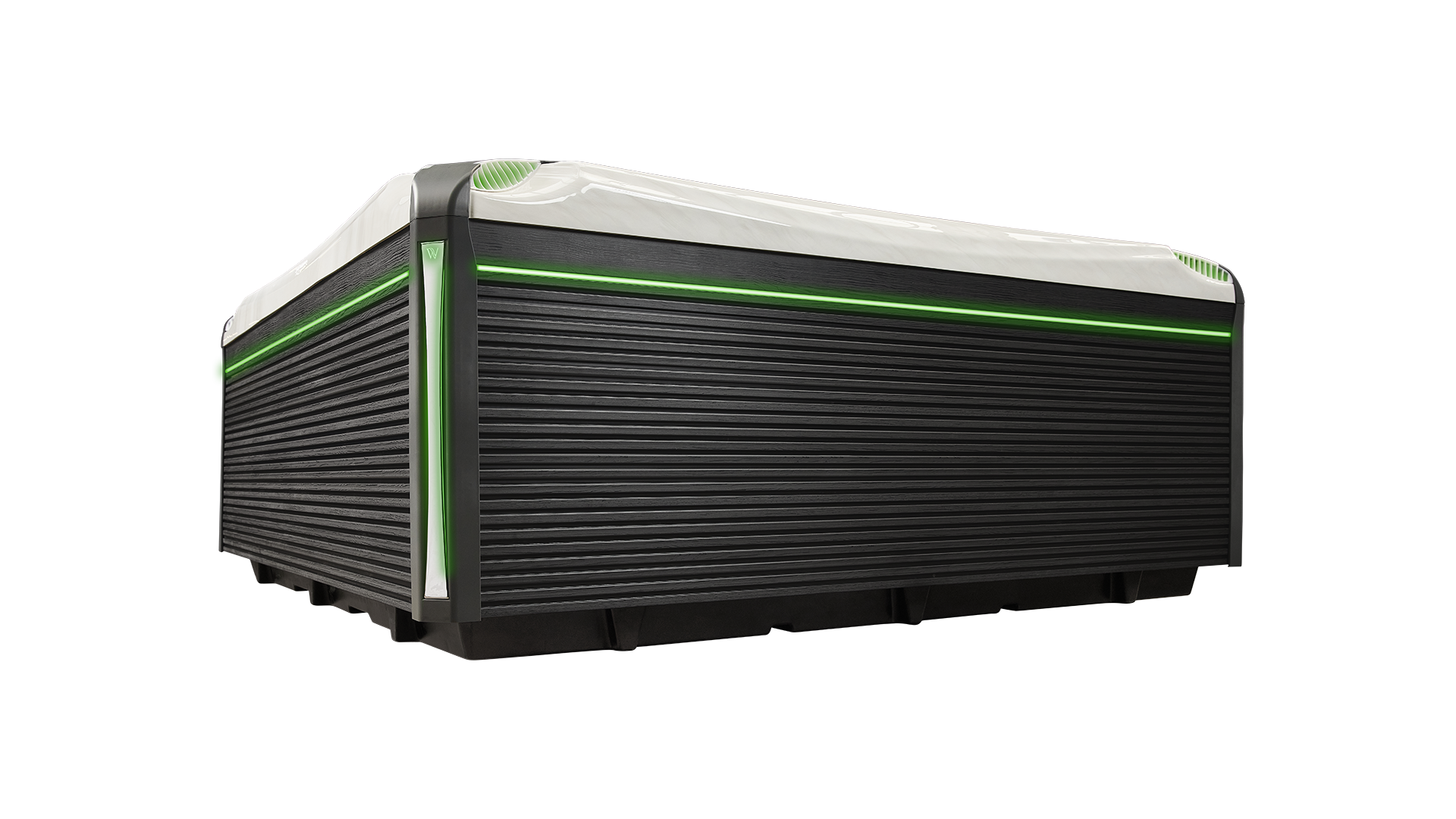 Le système d’armoires LightSide™ apparaît dans les spas PeakLife, qui comprennent un éclairage caché sous les éléments d’angle, et une bande LED développée en interne, qui court le long du couvercle latéral du spa.